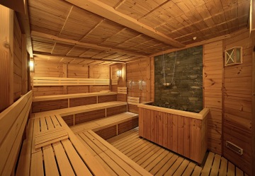 Solná sauna nabízí spojení principů suché sauny s horkým vzduchem a unikátních vlastností soli. Prosvětlené pásy z himalájských solných cihel a teplá záře působí hřejivým dojmem na lidskou psychiku. Při pobytu v solné sauně vstřebáváme minerály, které mají příznivý vliv na lidský organismus – na dýchací cesty, pokožku a centrální nervový systém. Saunu doplňuje esence Máty klasnaté s protizánětlivými účinky.