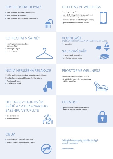 Pro zchlazení rozehřátého těla můžete využít ochlazovací bazének, sprchy u jednotlivých saun, mlžení nebo finské vědro. Před vstupem do bazénku je nezbytné se osprchovat. Teplotu vody v bazénku udržujeme v rozmezí 10 až 15 °Celsia.